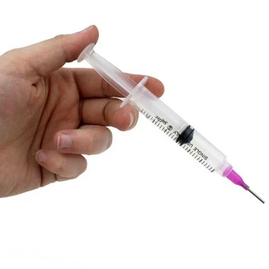 Attach flat back crystals faster than ever! Recommended for use with E6000 or similar viscosity glue. This package contains four Glue syringes with two caps, two green tips (14 gauge) for use with crystals 12ss and larger. It also includes two purple tips (16 gauge) for use with crystals 12ss and smaller and instructions. Great for applying small, specific amounts of glue in hard to reach areas. Syringes fit up to 5.8 ml.
