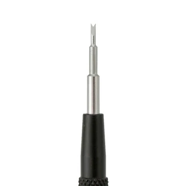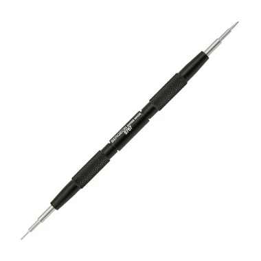 This fine quality aluminum spring bar tool is designed to last a lifetime. It is the perfect tool for removing spring bars from metal and leather watch bands. The forked end works great for opening spring bars, and the pointed end is just right for compressing shouldered spring bars from the lug holes. The weight, handle knurls, and size make this watch tool ideal for the delicate job of adjusting the size of watch bands or repairing a watch clasp. Each tip is removable and has identical threading making it easy and convenient to change or replace the tips as necessary for repair work.