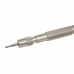 This Bergeon spring bar tool is one of the best spring bar tool styles on the market today. One end of tool features a reversible tip, it has a small forked end for removing spring bars, and when you turn it over it has a straight pointed end for removing link pins. The opposite end has a larger forked end slightly curved like the Japanese spring bar tool. The smaller forked end is perfect for the metal bands where you have only a small space to fit the tool into and try to move the tool in that space. The larger forked end which is spatula shaped is perfect for divers style bands and the extra large cases as it will give you the extra strength and leverage you need for heavier duty spring bars. The knurled handle is designed to give you a more comfortable grip and with less chance of the tool slipping out of your hand. The replacement tips are screwed in for a secure hold and easy replacement. This is one of the most versatile and heavy duty spring bar tools we carry and we highly recommend it.