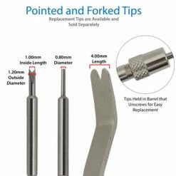 - Forked tips measure 1.20 and 4.0mm, Pointed tip measures .80mm