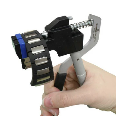 Probably the most efficient tool for inserting, removing and reinserting watch band pins of all watch types; especially from high end watches like Omega®, Movado®, Tags®, and Rolex®. It takes all the guess work out adjusting watch bands. It is effortless, removing the need to pound on a band with a hammer, and risk damaging bands or watch cases. These pin pusher pliers are very professional and durable. You will be able to impress your customers with the efficiency and speed of your repair work. Allows you to easily remove and set watch band pins, and soon you will find that this is only tool that you want to use to remove and insert pins. With very little effort on your part, the pin pusher pliers applies enormous pressure precisely on the band to effortlessly remove even the most difficult pins. The pin pusher pliers is probably one of the best investments you can make for your workbench and at a fair price considering the unmatched quality. Also includes 4 spacers/shims that can be used in multiple combinations to secure a wide variety of watch band widths. Replacement Pins available in sizes 0.85 mm and .75 mm.