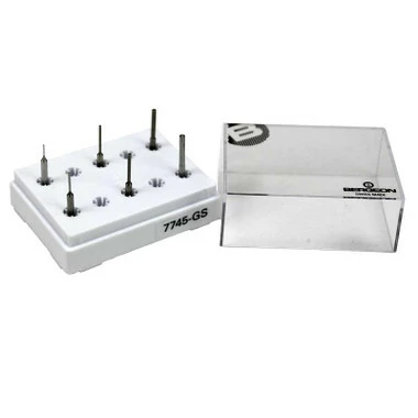 An expertly designed pin set in Bergeon’s famous Swiss quality! Â Six pins come in a handy white polystyrene stand. Â Replacement pins for 7745-100. Â Swiss made.
