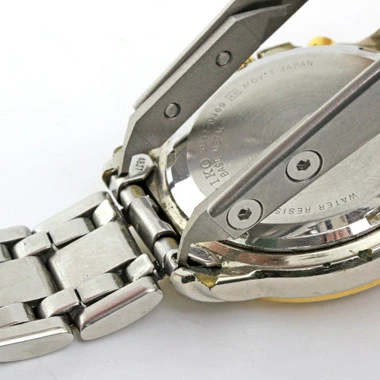 This professional grade tool removes spring bars without having to take the watch bracelet clasp off. Features a specially shaped stainless steel handle which aligns the tips and evenly compresses the spring bar for simple removal without slipping or scratching the case. The tool is at an angle to allow you to more easily grasp the spring bar. Hardened steel tips are extra fine, just 1.0mm, ideal for brands with very little space between the case lugs and bracelet. Set includes the spring bar tool, a hex driver (1.4mm) to change tips, plus a pair of nylon tips. Overall size is 4.5″ x 1.75″.