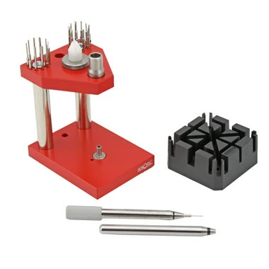 This watch band tool by Horotec was designed with two simple goals in mind: to simplify your work and last a lifetime. This kit allows you to easily remove and fit lug screws, bracelet screws, and friction pins while adjusting a watch band. This aluminum and steel frame punch holder allows you to quickly change the blades of your pin punch to do more jobs with the same tool. Attractive and functional, this multi-purpose press includes; band holder, pin holder with a set of 11 pins, screwdriver with a total of 12 blades and an interchangeable blade in a nylon case protector