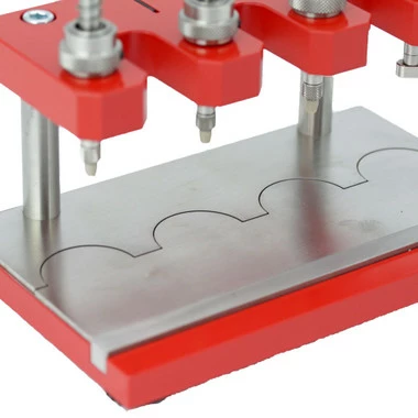 This Horotec tool was designed to make watch hand fitting as simple as possible. This hand press can be used when pressing hands in both wrist watches and pocket watches. It comes with four different PEEK tips: 1.35mm, 0.95mm, 0.30mm, and a non-centered flat tip. It also has four plungers and springs to make hand setting even easier. PEEK and Stainless Steel replacement tips are available.