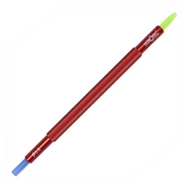 French made and recommended for quartz watch hand replacement and fitting (installation). These fine watchmakers tools have two ends that are plastic to protect the watch face and dial from scratches or marring. Features solid aluminum body and knurled grip that are both lightweight and sturdy for delicate work. This tool will help in putting the hands on with no slipping and even pressure so they do not bend the hands or the watch movement post. Double ended for various size watch hands and posts. 4 size tools available each with 2 different size ends, tools sold separately. Each tool has a hole in the end in which to fit the watch hand post when pressing into place when installing hands, except for 64.013 which has one hole and one solid end but still serves the same purpose of a wristwatch hand install tool.