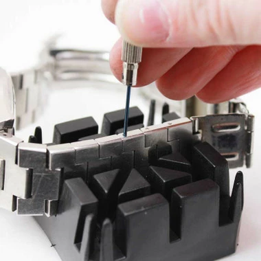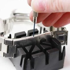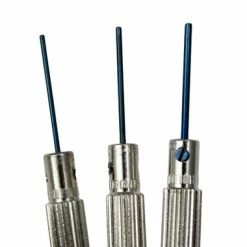 These quality pin punches have tempered steel tips. Use to drive out friction pins from bracelets and watch bands. Set includes 3 sizes: 0.70, 0.80 and 1.00mm. Spare tips are available and secured with set screw.