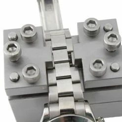 This link remover tool was specially designed to remove Rolex® Oyster and oyster-style watch bracelet links. When you need to size your watch down or add more links for a better fit, this tool will help to open the ‘permanent’ links that are not held in with screws. Also useful if you need to replace worn out pins and links that may have bent and warped from long years of use. Clamps the link to be removed in the tool and with the adjustment of the turning knob the link is pulled apart. This high quality tools is made of stainless steel and comes with an Allen wrench and a pry bar for extra torque.