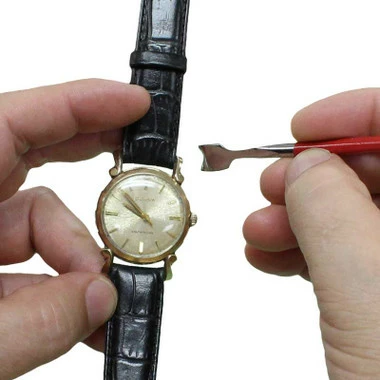 This is a spring bar tool that is made completely of solid steel. This spring bar tool can be used for removing spring bars and friction pins as well as other miscellaneous jobs, just like all other spring bar tools. This one is unique because it is only one piece which allows you more leverage than other tools might.